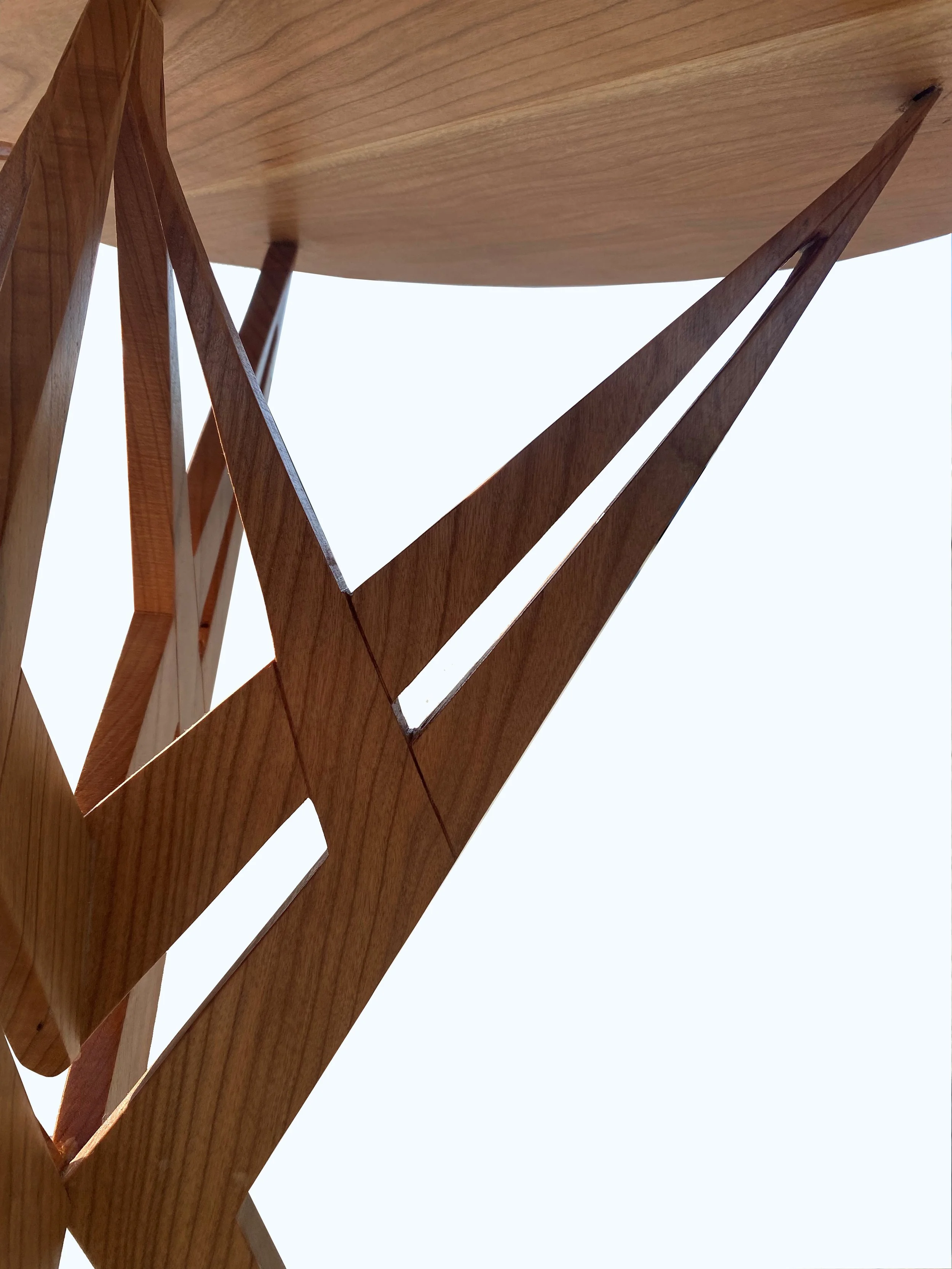 This beautiful Cherry live edge table has a natural look and Sharp edges. It has Cherry legs with an elegant round Cherry accent pieces. with a 2 pieces only for the legs and the cuts in between the wood, adding another level of challenge in accuracy and precision is what making the table elegant and unique . This coffee table will fit nicely in a living room , entryway or any other place in which it will add to the overall character of the room.
